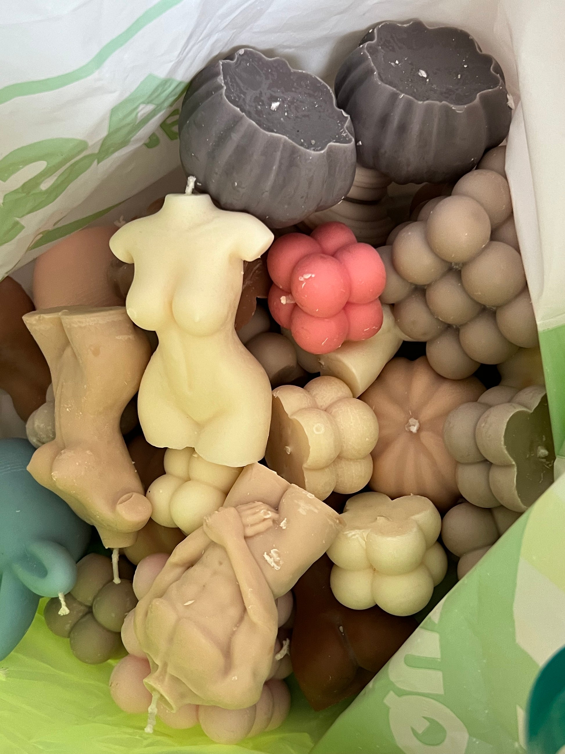 The candles sold in this range are ones that haven’t turned out quite right, candles I’ve used for content, have small imperfections, the colour isn’t perfect, small dents etc…